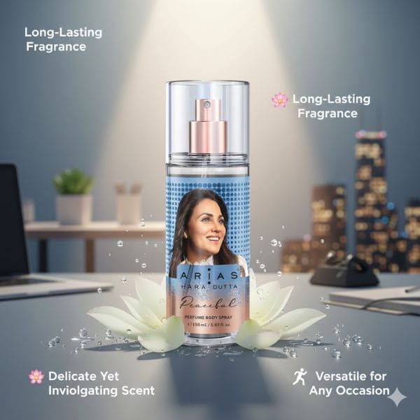 Choose Arias Peaceful for a fragrance that balances freshness, elegance, and inner calm. Unlike ordinary body sprays, it combines a long-lasting, premium scent with a gentle, skin-friendly formula, ensuring you stay confident, fresh, and worry-free throughout the day.