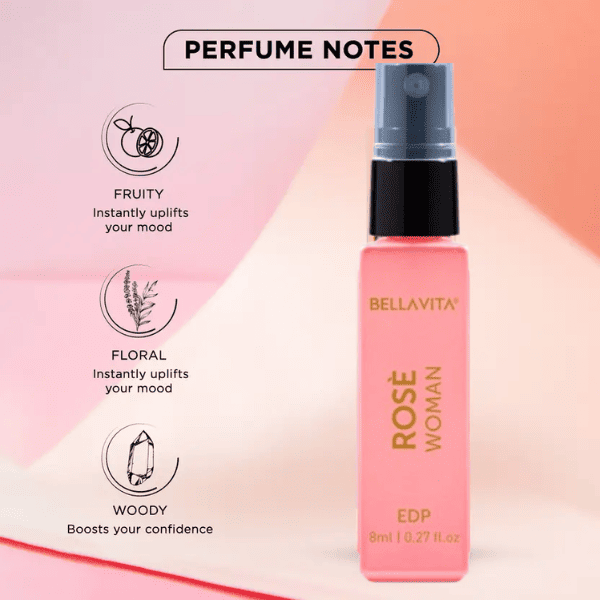 Elevate your feminine charm with the Bella Vita Luxury ROSE WOMAN Pocket Aerosol Perfume (8ml) – a perfect blend of grace, freshness, and convenience. Crafted for the modern woman, this premium pocket-sized aerosol perfume brings the delicate yet captivating essence of fresh roses combined with subtle fruity and musky undertones.
