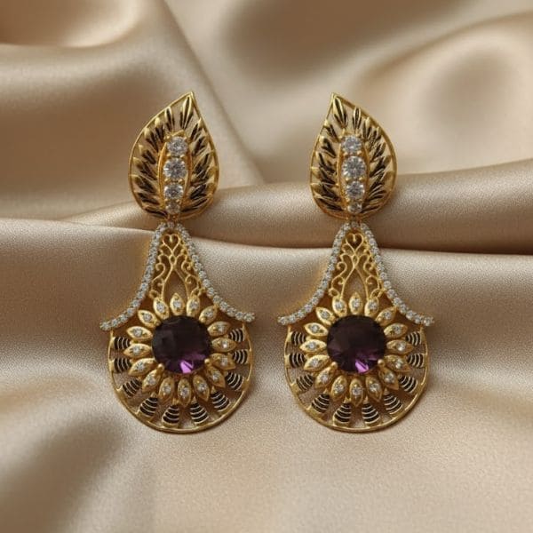 5. Versatile for Any Occasion:These earrings are incredibly versatile, making them the ideal accessory for a wide variety of occasions. Whether you’re attending a formal dinner, a gala, a wedding, or celebrating a milestone birthday, these earrings will add a touch of elegance and sophistication to your ensemble. The combination of purple gemstones and gold plating allows the earrings to pair effortlessly with both traditional ethnic wear and modern, contemporary outfits. From elegant cocktail dresses to sarees and lehengas, these earrings complement a range of looks, making them a must-have addition to your jewelry collection.