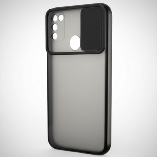 Give your Samsung M21 the perfect balance of style, protection, and practicality with this Transparent Matte Back Cover featuring a sleek black border and a sliding camera protector. Designed to safeguard your phone while maintaining its modern look, this case offers a premium matte finish, anti-fingerprint coating, and robust camera slider that keeps your lens scratch-free and private.